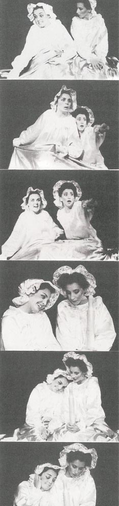 La separación cada vez mayor entre el latente y el manifiesto sobrepasa el límite de la angustia para pasar a configurar un cuadro histérico. Baste señalar la sensación de no reconocer como propias a partes de uno mismo. Esto se puede relacionar con el hecho de la pérdida de la propia identidad. La persona pierde contacto con la realidad que le circunda porque no encuentra motivo de identificación con ella. Trata de acomodar la realidad de tal manera que puede encontrar partes identificables. Esto se clarifica, en la práctica, mostrando a los personajes inventando, ya no solo un disfraz, sino, una vida imaginaria que no le sea conflictiva.
